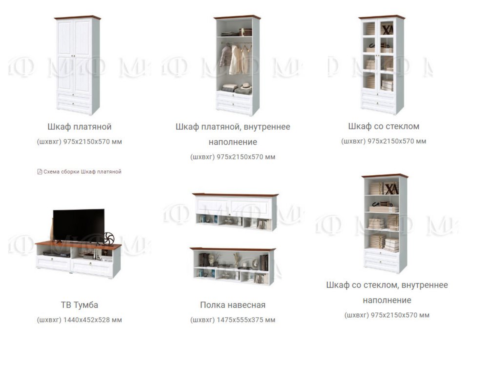 Цена указана за комплектацию на фото: Шкаф 2-х створчатый бельевой со стеклом, Шкаф 2-х створчатый, Полка, Тумба