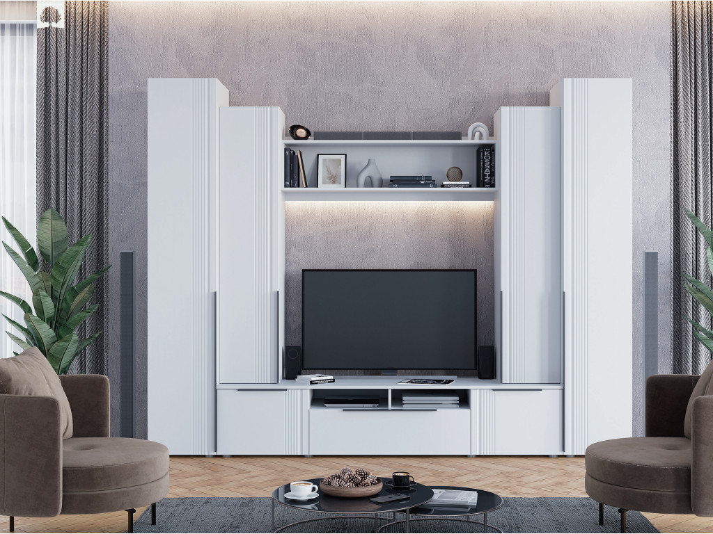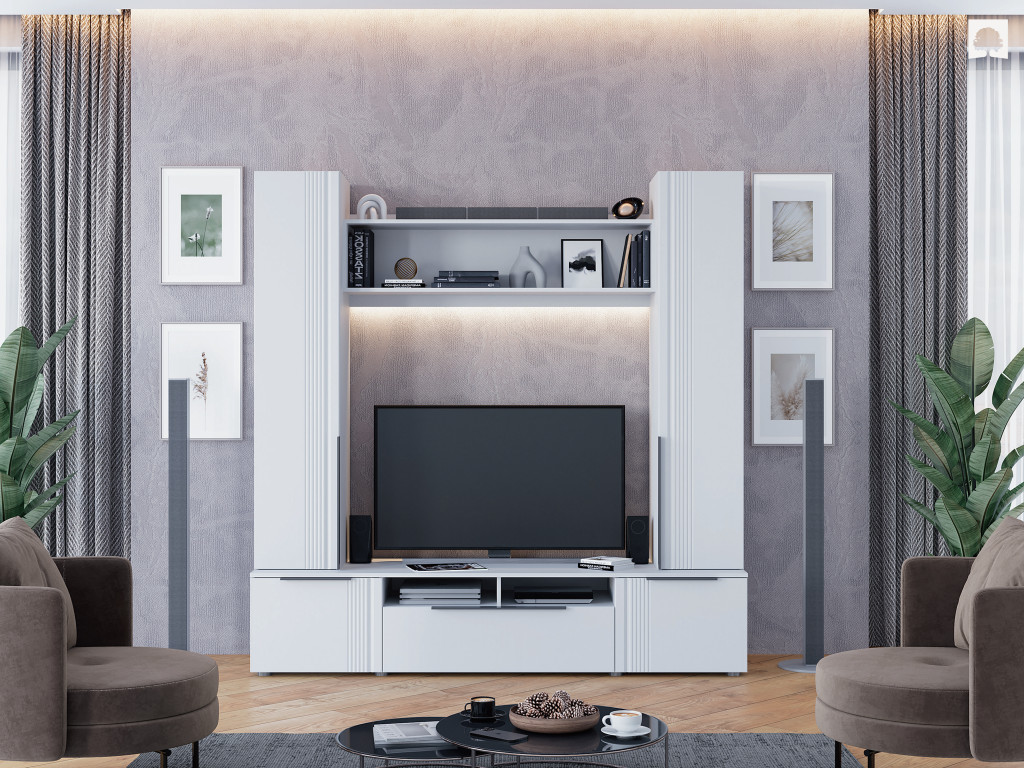 Цена за комплект: Тумба ТВ 2000, Пенал (надстройка) (2шт), Полка настенная №1, Пенал с полками (2шт)