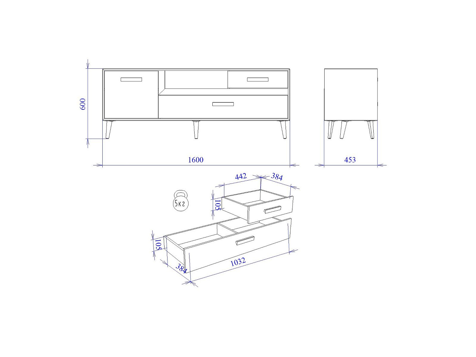 Макс.нагрузка на ящик (кг): 5