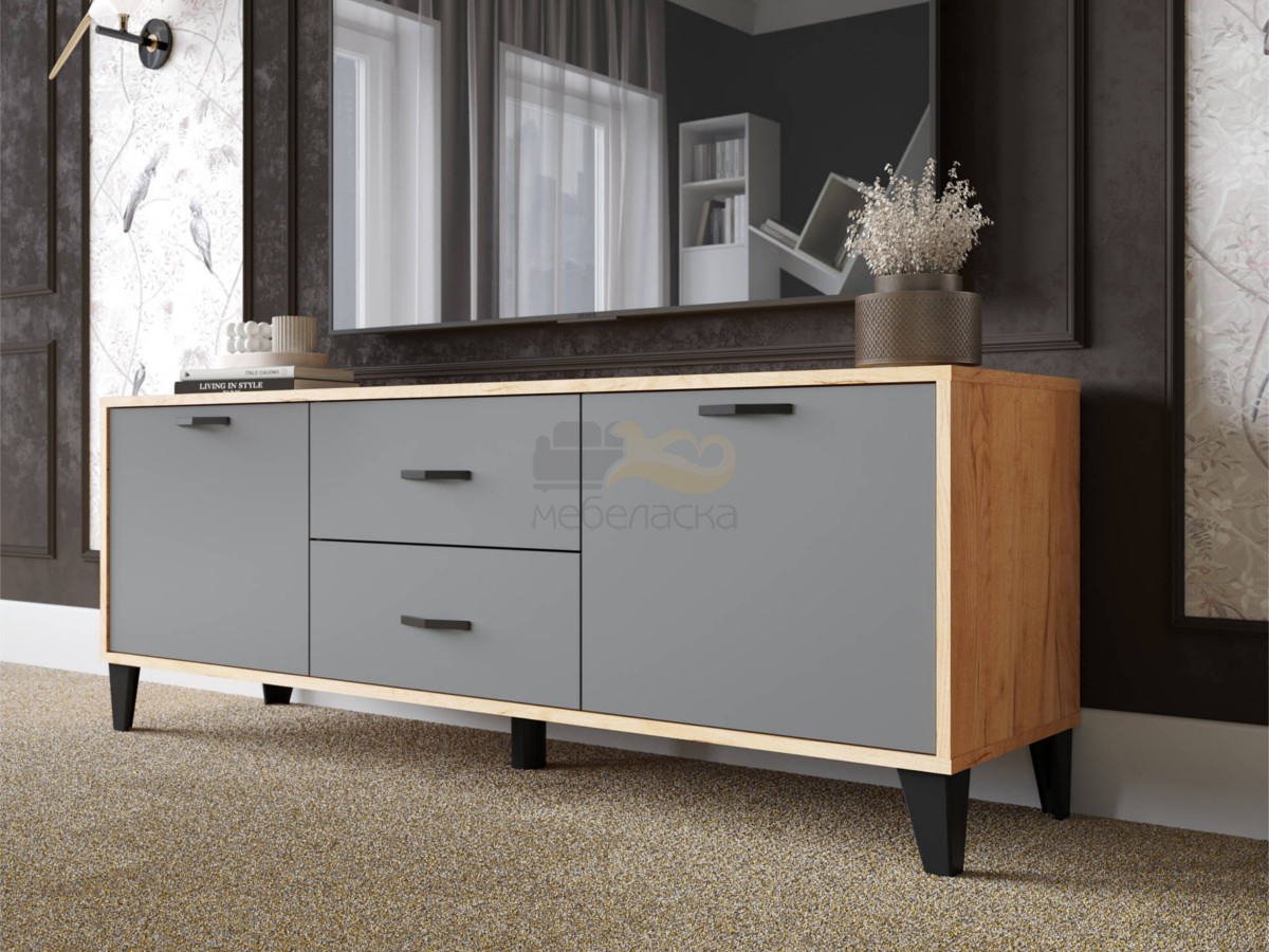 - Тумба под ТВ ТВМ-6 крафт золотой/серый графит
