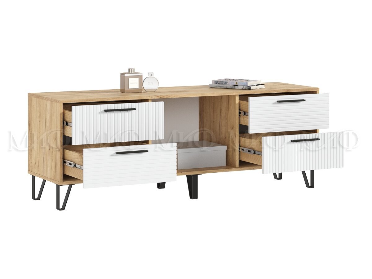 - Тумба ТВ (1500) Флэш Браш Вайт, Дуб Крафт