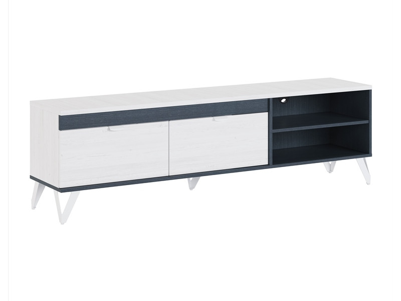 - Тумба имеет два выдвижных ящика на шариковых направляющих полного выдвижения и открытую нишу с полкой из ЛДСП.