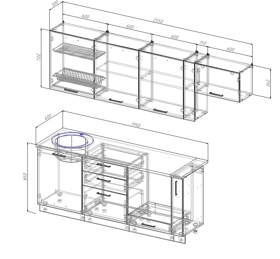 - Столешница: ЛДСП 26мм со скругленным краем (в пластике)
