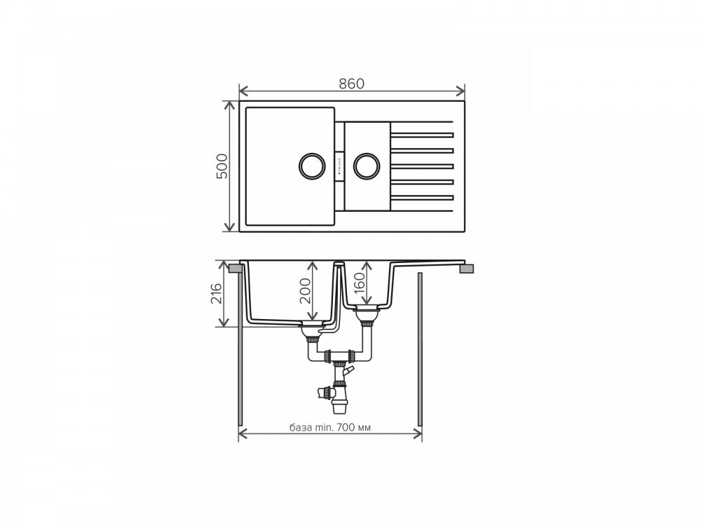 - Кухонная мойка Tolero Loft TL860 Серый 701