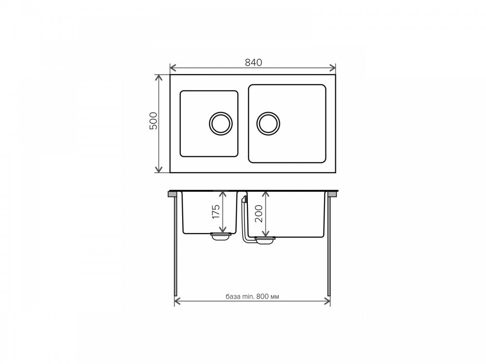 Длина мойки, мм: 840