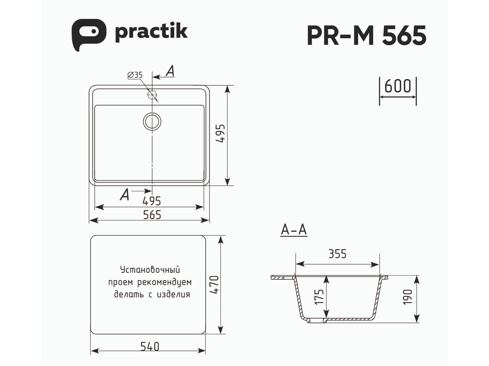 - Мойка Practik PR-M 565-004 черный оникс