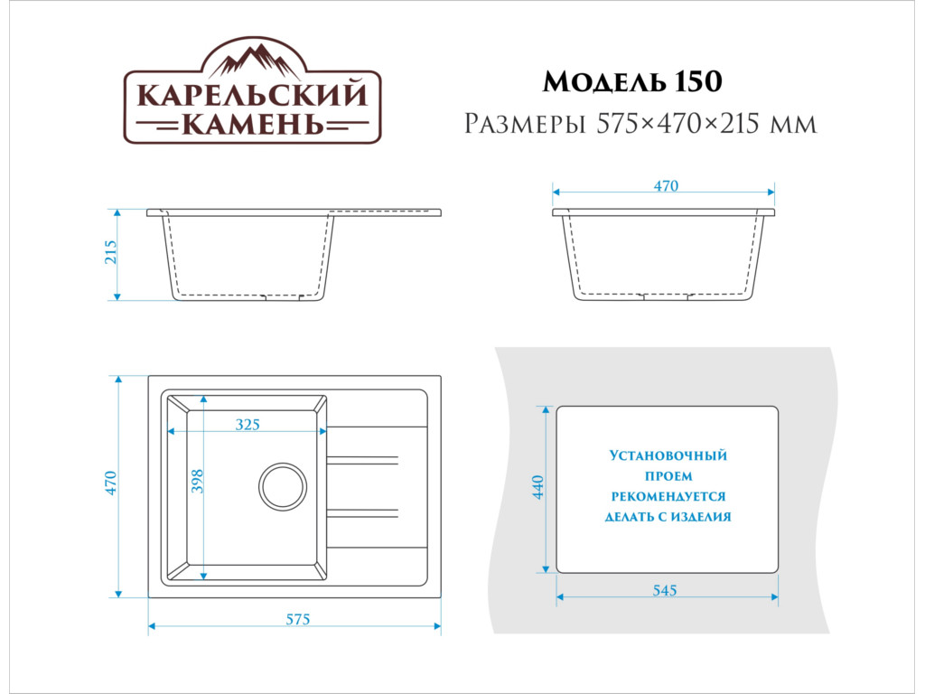 - Мойка врезная Карельский камень модель 150 Светло-серый