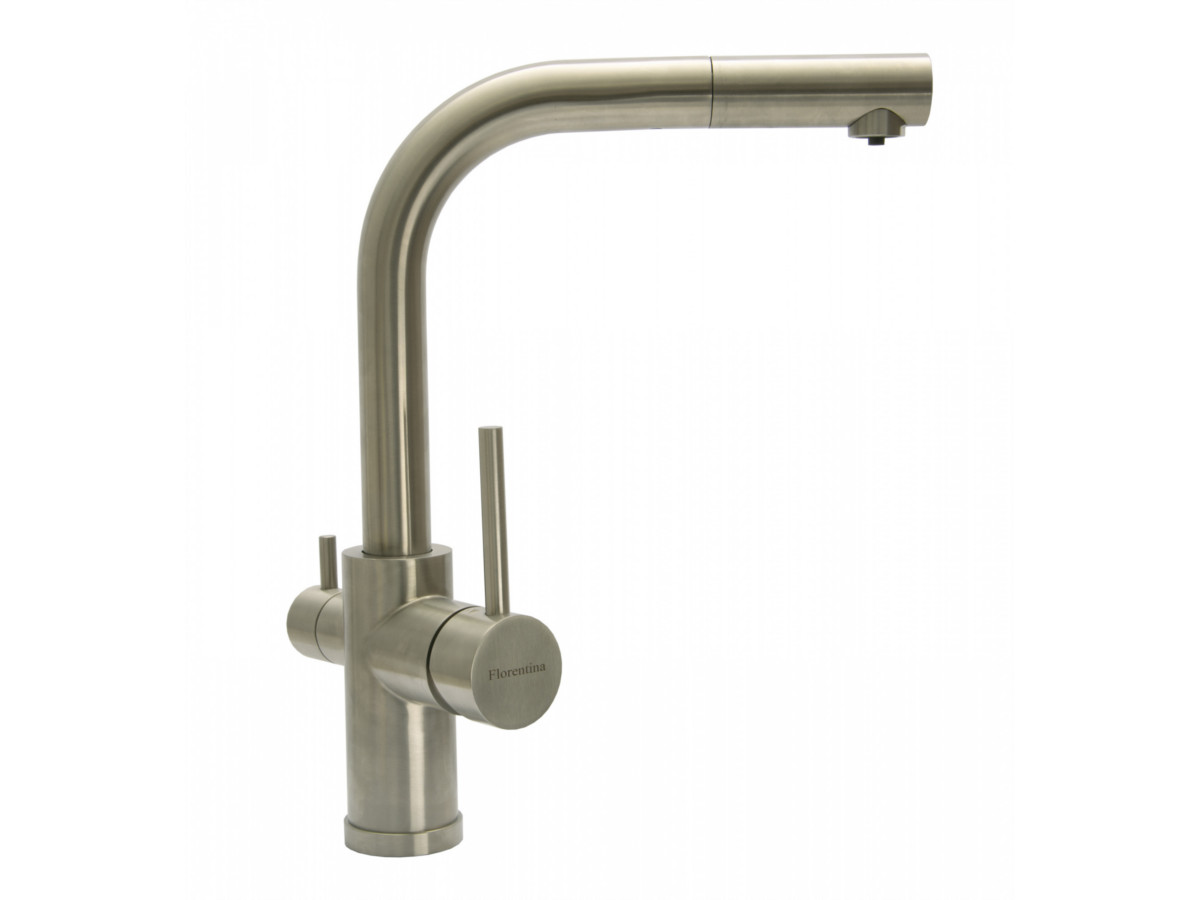 - Смесители Florentina Кристалл с выдвижным изливом нержавеющая сталь