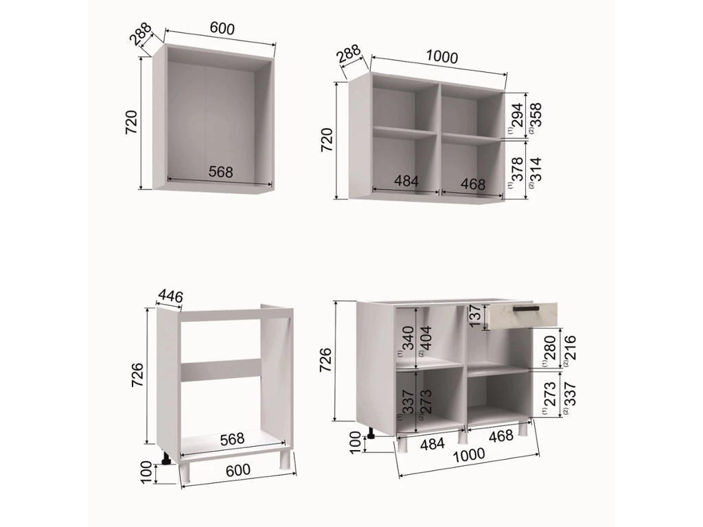 - Высота верхних шкафов, мм 720