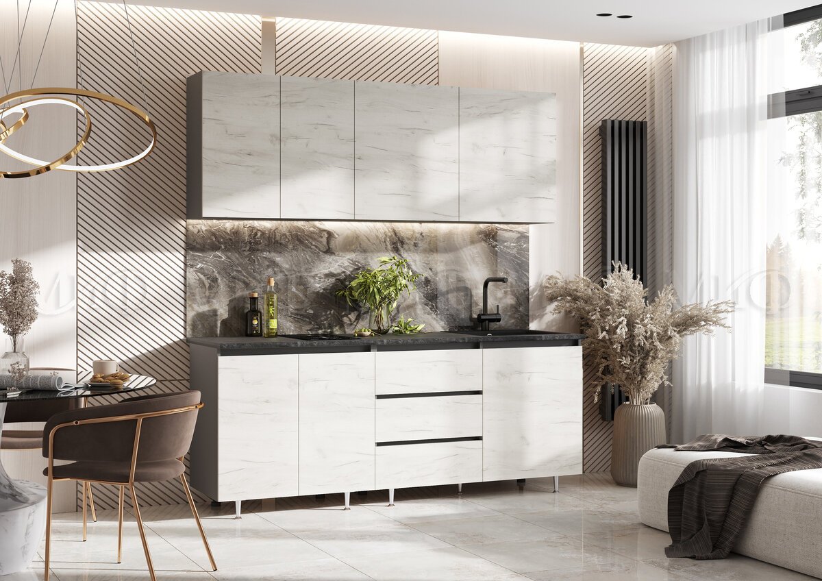- Кухня Челси 2000 мм Компановка №2 Дуб крафт Белый, Графит (Кастилло)