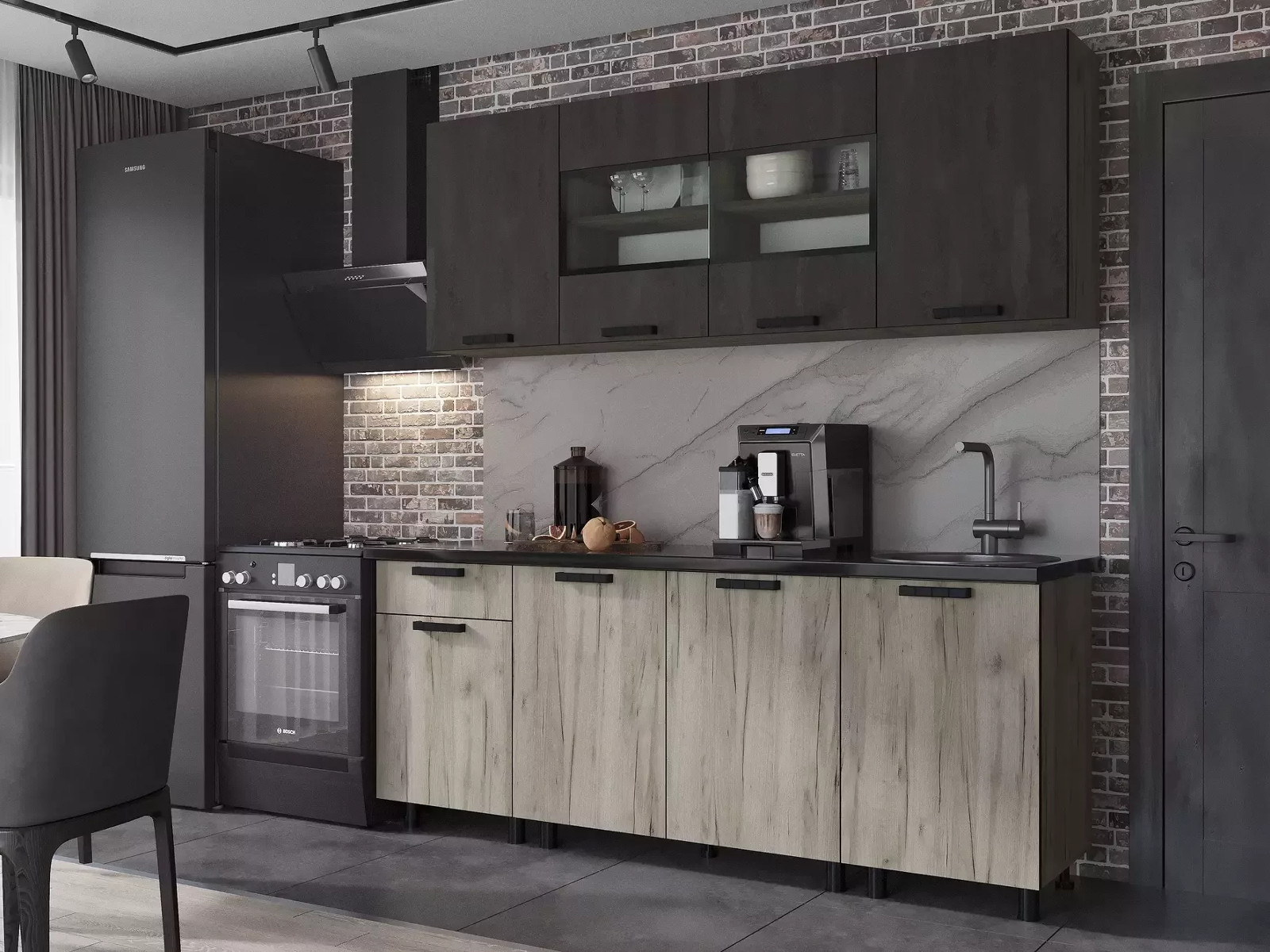 - Фасад: ЛДСП Железный камень/ЛДСП Дуб крафт серый