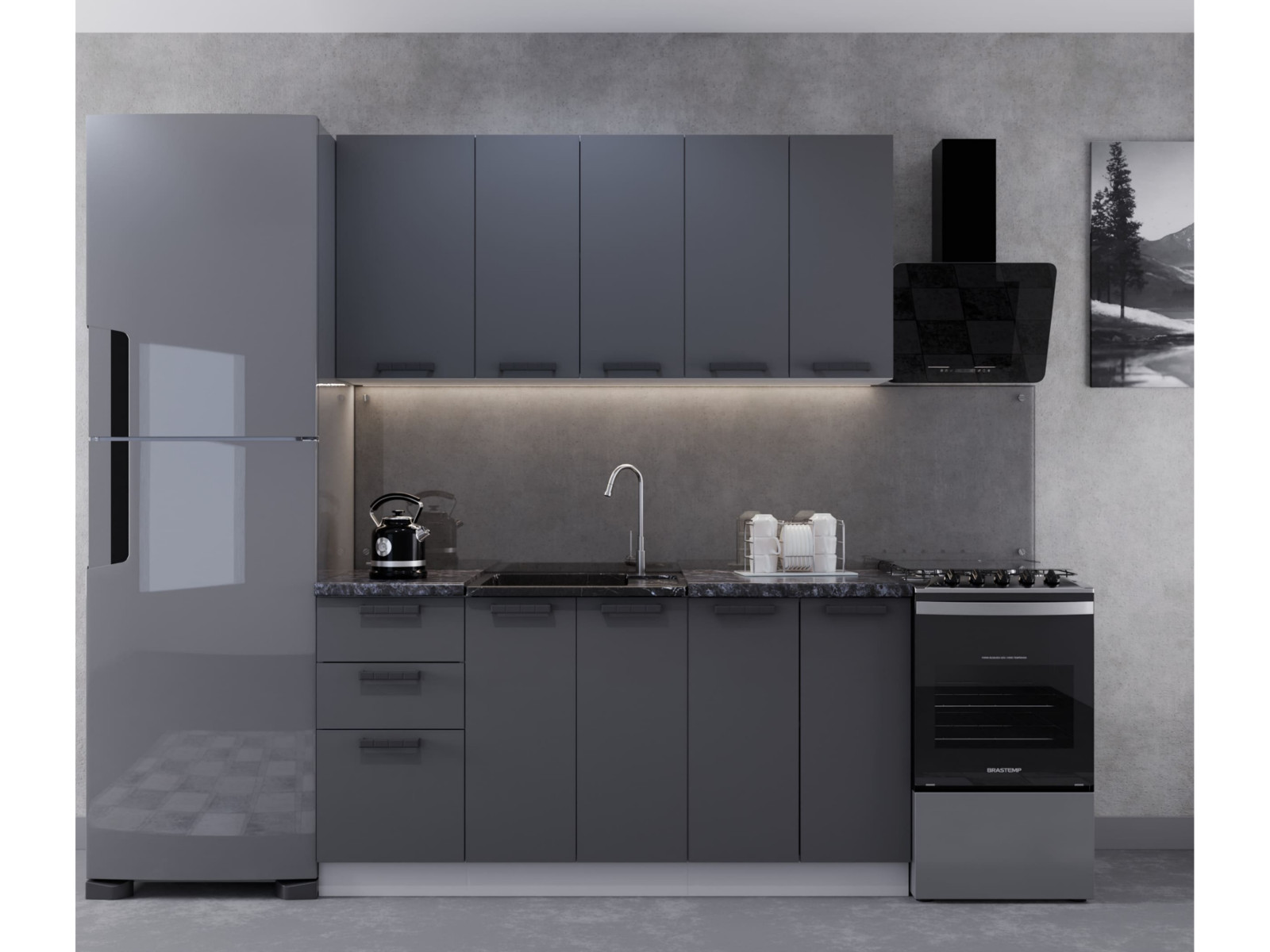 Кухонный гарнитур арт 45 Лайн Обсидиан Пикрит 2800 мм
