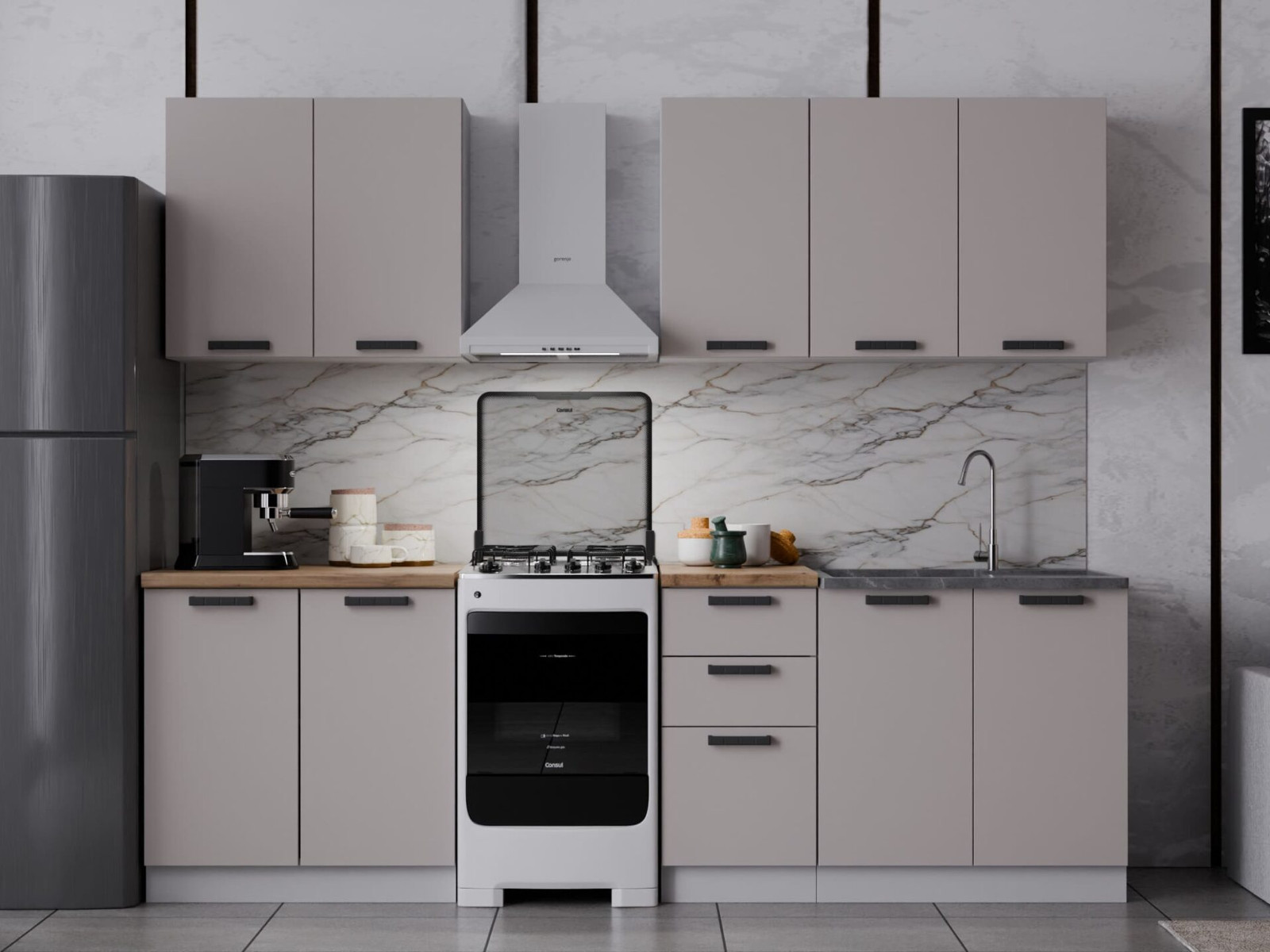 Кухонный гарнитур КГ 9 Цемент тёмный/Цемент светлый