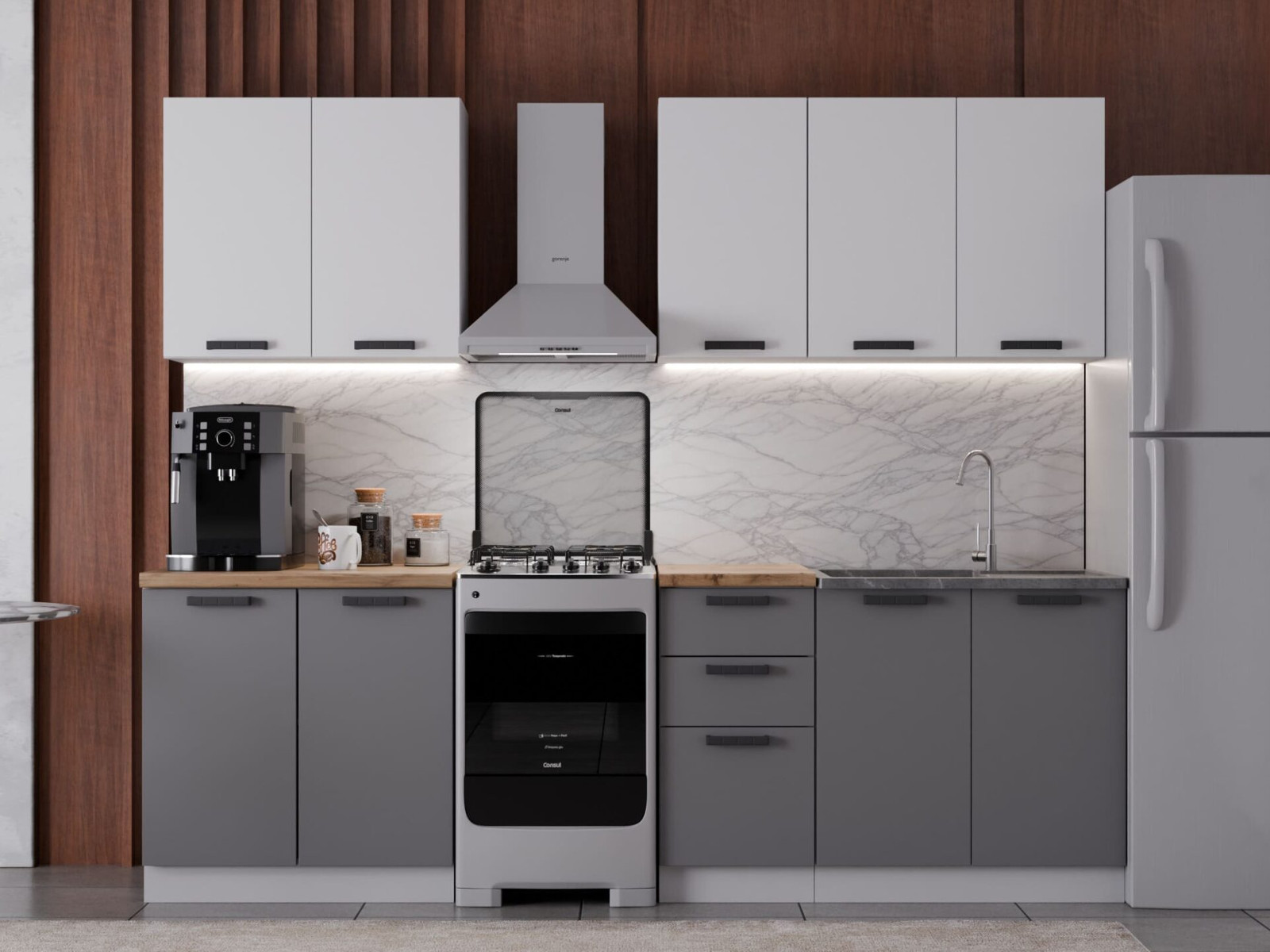 Кухня Фортуна 2000 мм Белый/Графит