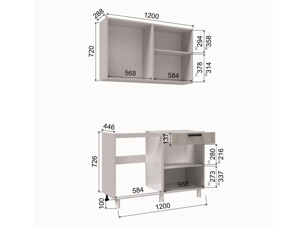 - Высота верхних шкафов, мм 720