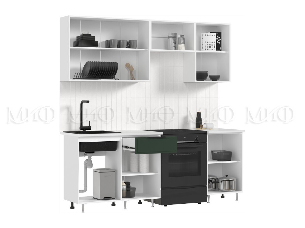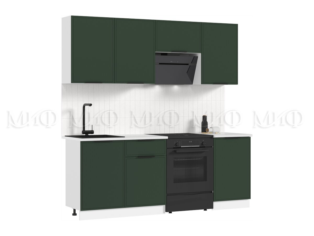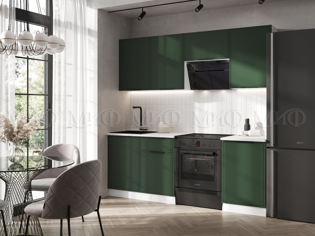 - Кухня Николь 2100 мм Холст темно-зеленый