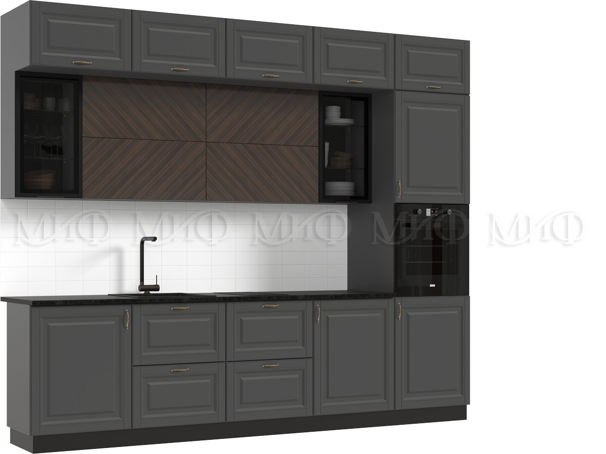 Кухня Престиж 3000 мм Компоновка №2 Графит софт/Прайм орех