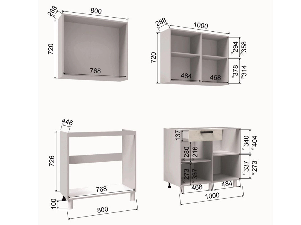 - Глубина нижних шкафов, мм 446