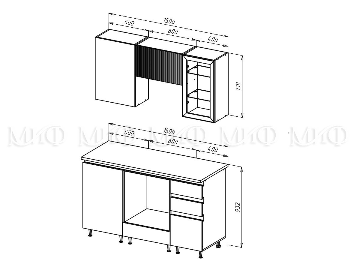 - Кухня Техно-6 1500 мм Графит/Экзотическое дерево Амазония