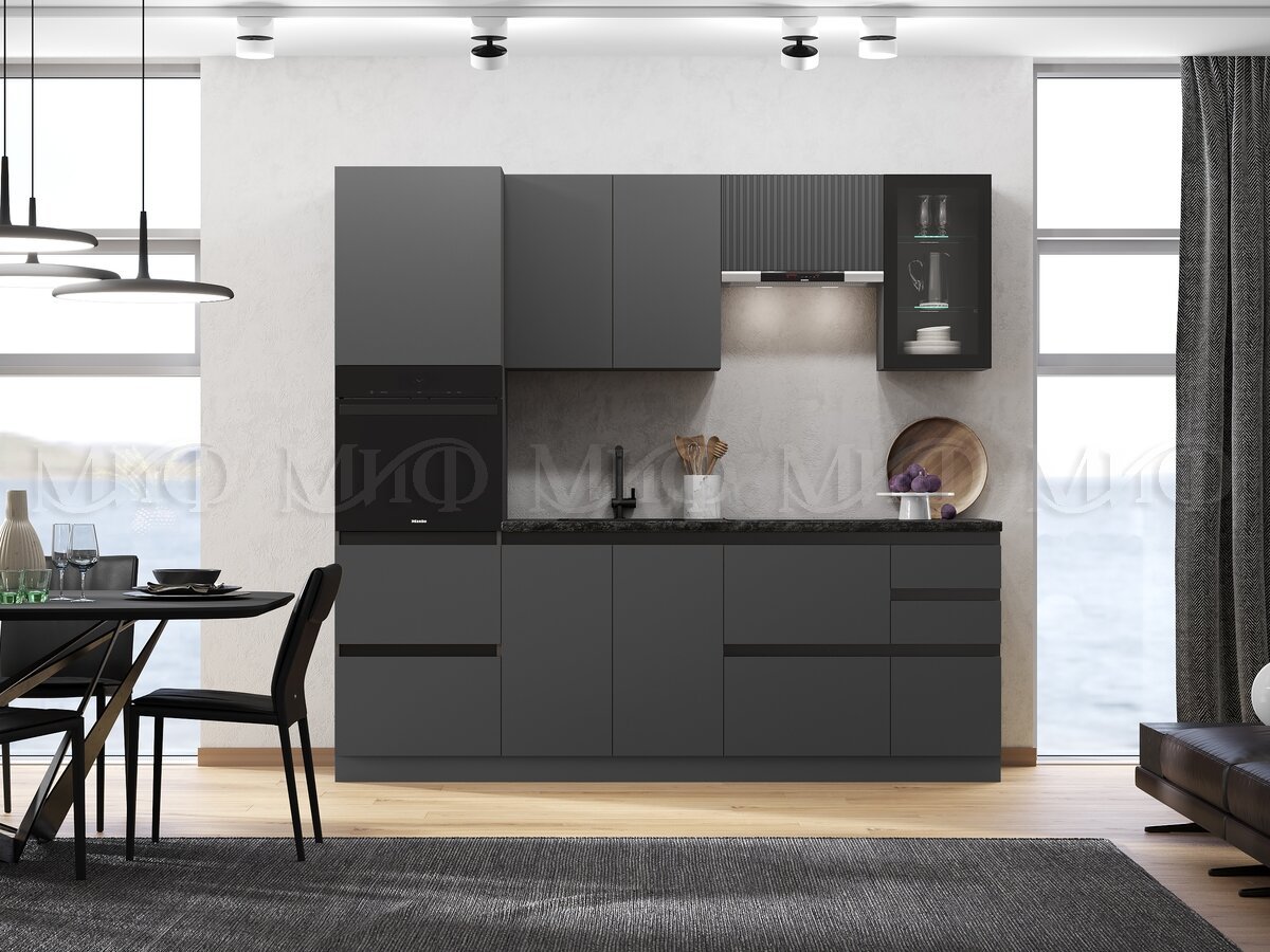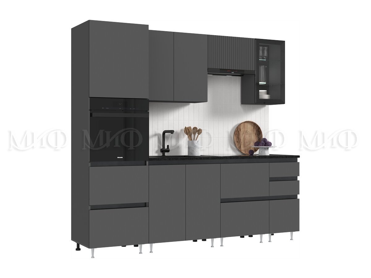 - Кухня Техно-6 2400 мм Графит/Графит софт