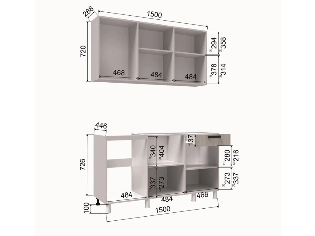 - Кухня Вандт 1500 МДФ Арктик без столешницы