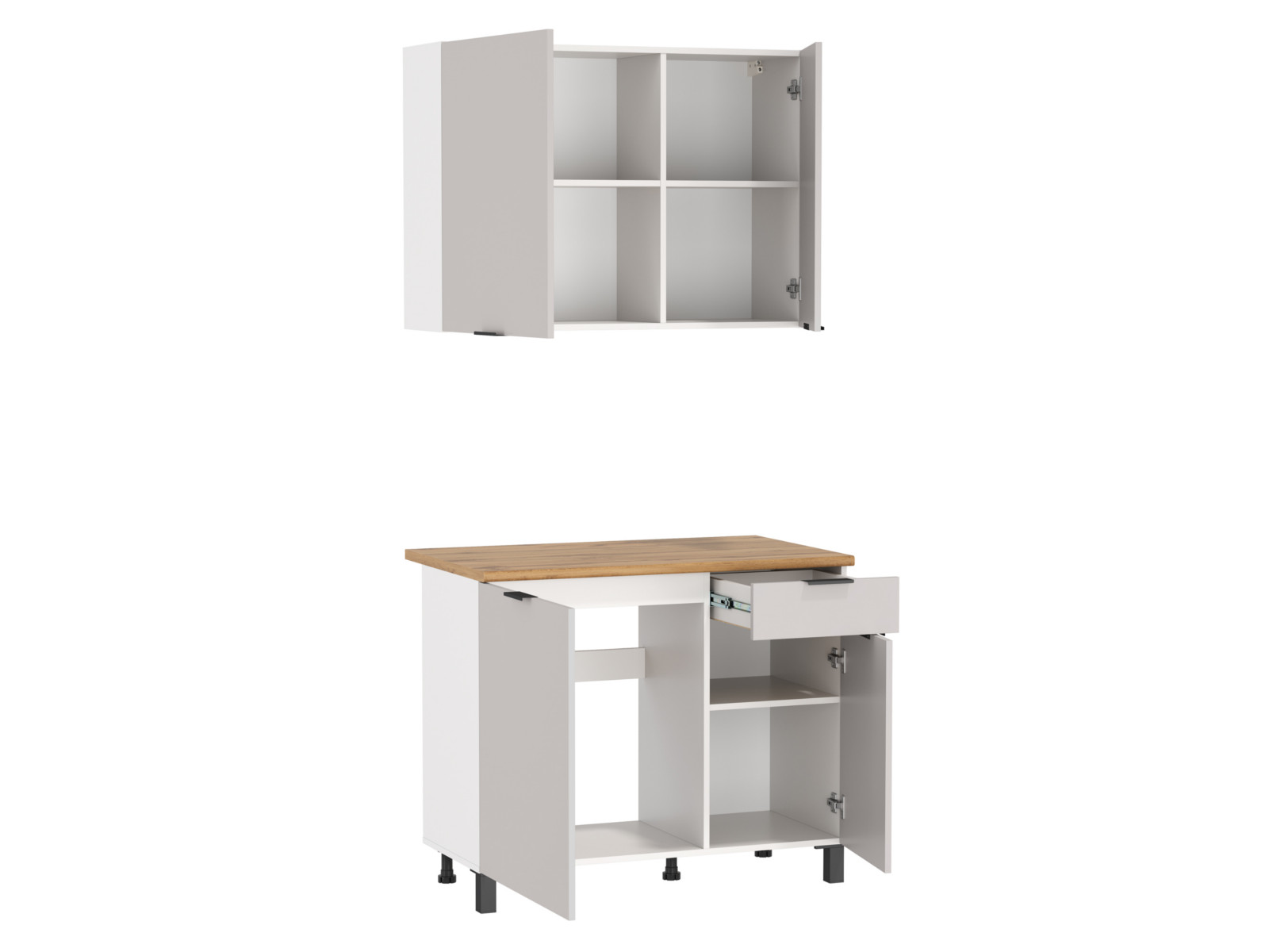 Цвет: белый / фасад: ЛДСП кашемир / столешница: дуб вотан / ДВПО: белый