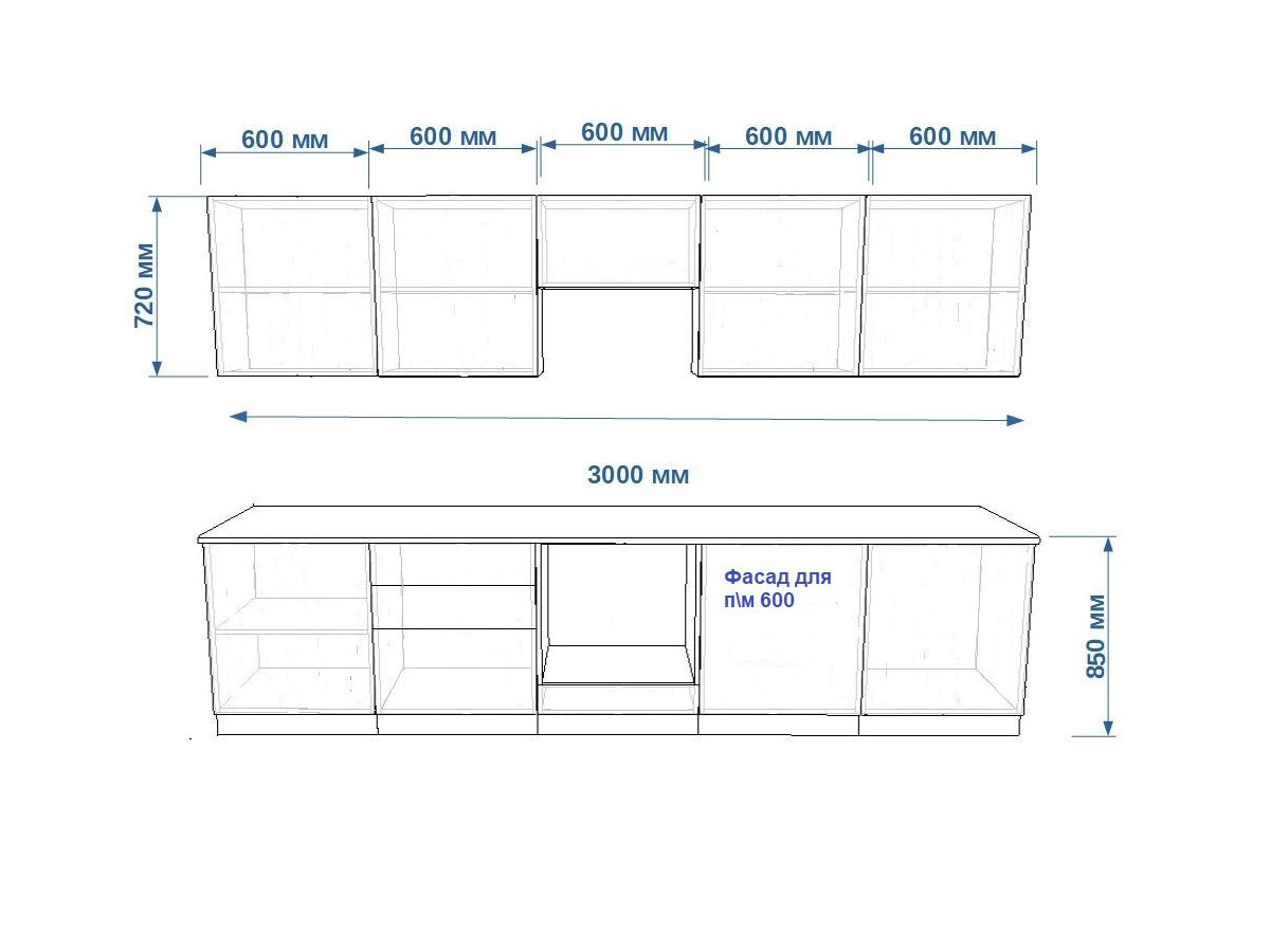 Кухонная мойка, стеновая панель, посудосушитель, планки для столешницы в комплект не входят.
