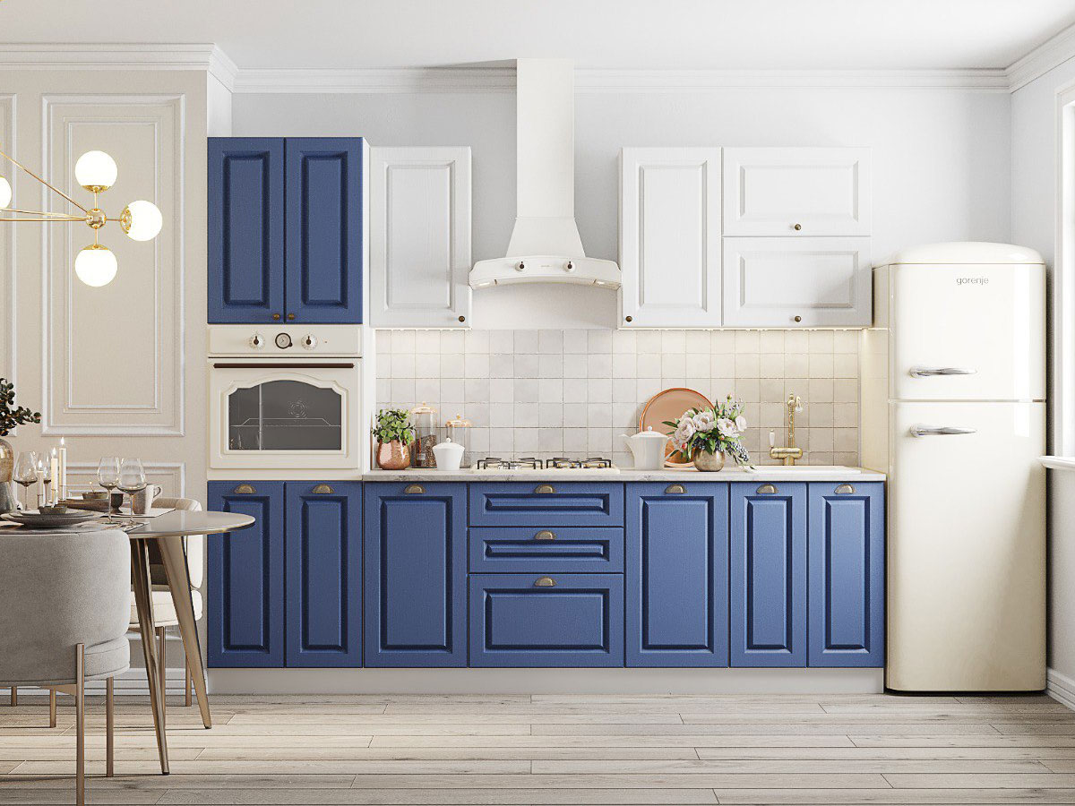 Высота: верхних шкафов 720 мм, нижних - 820 мм.