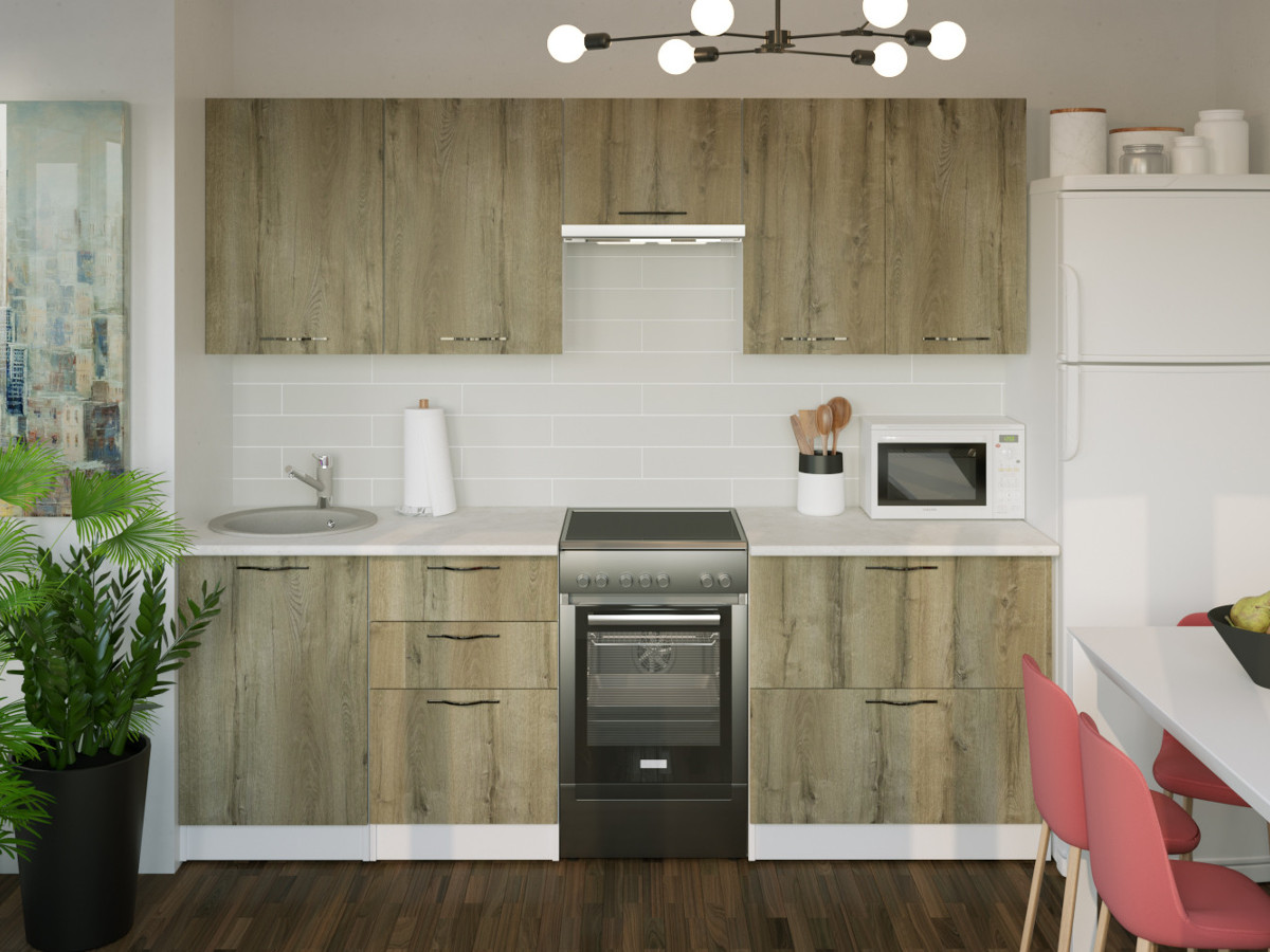 Мойка, смеситель, стеновая панель и посудосушитель в комплект гарнитура не входят.