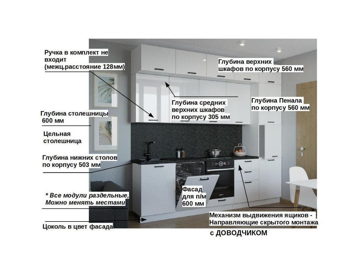 Кухонный гарнитур арт 17 Белый глянец 3000 мм