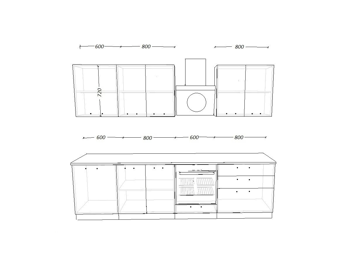 Кухонная мойка, стеновая панель, посудосушитель, планки для столешницы в комплект не входят.