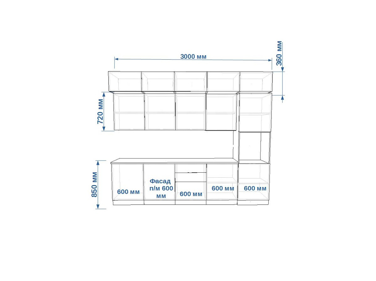 - высота верхних шкафов 720 мм