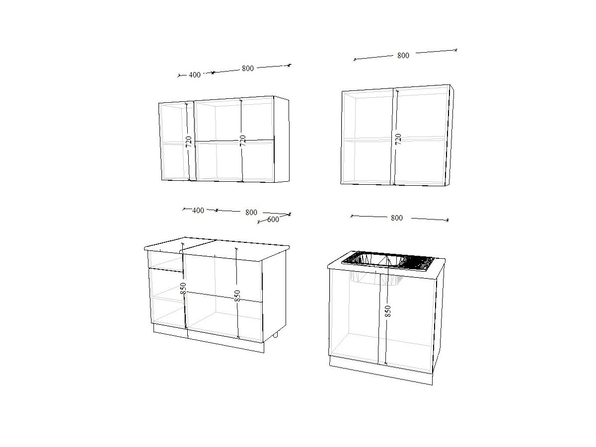 Кухонная мойка, стеновая панель, посудосушитель, планки для столешницы в комплект не входят.