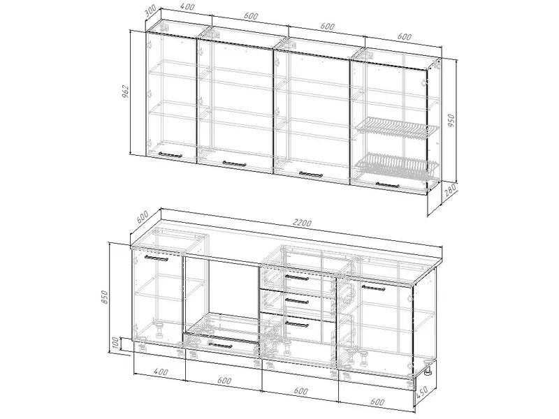 - Кухонный гарнитур Демо 2200 (верх 950 мм) низ МДФ
