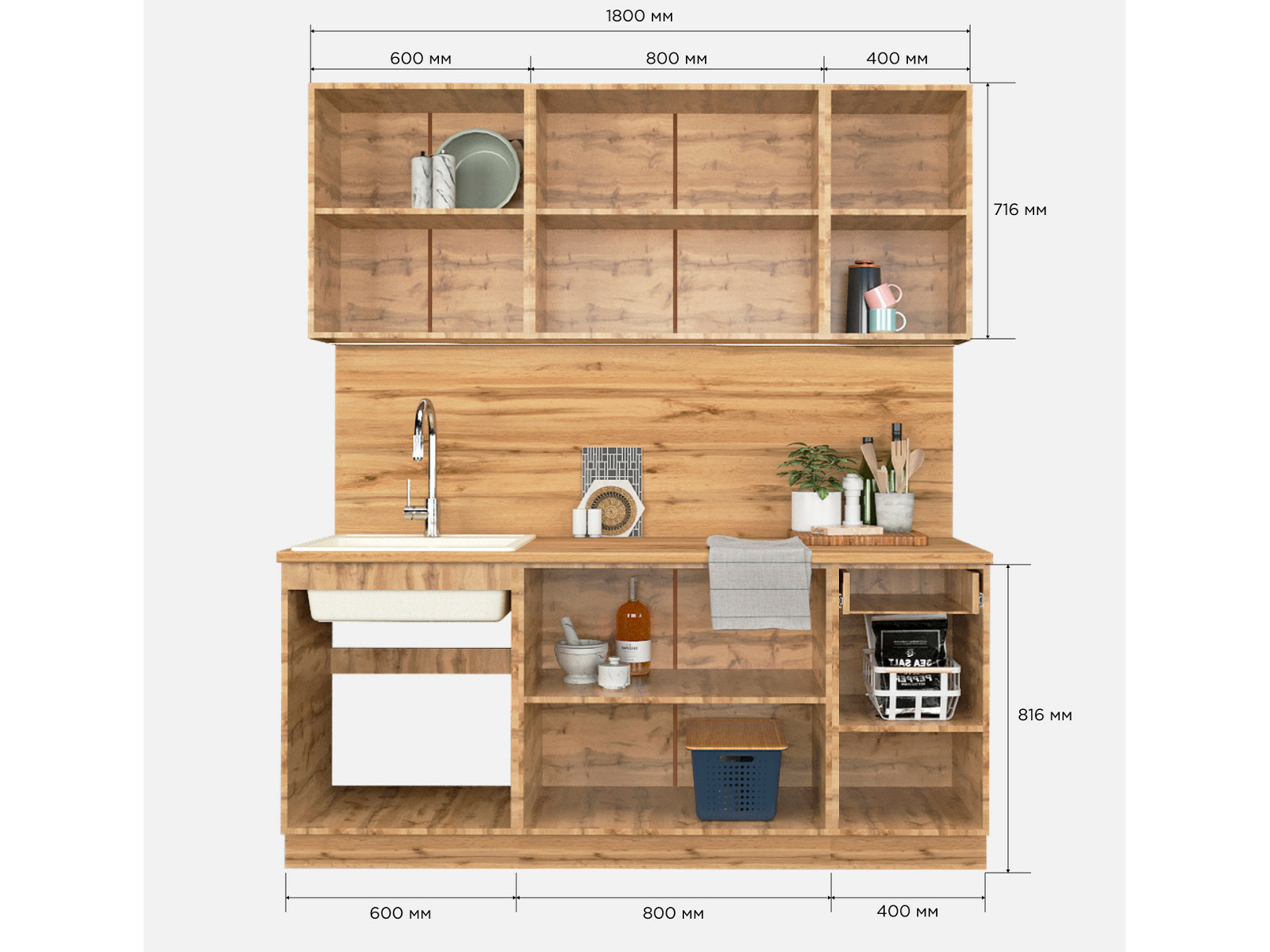 - Кухонный гарнитур Эстетик 1800 мм МДФ Вотан/Порт-Ройал