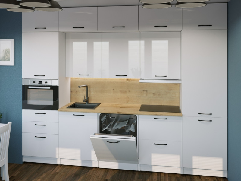 Мойки, смесители и посудосушители в комплекты гарнитуров не входят.