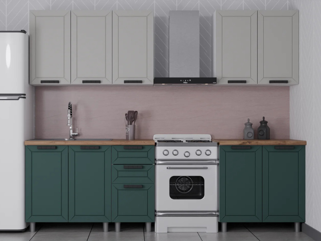 - Кухонный гарнитур Лилия 2000 мм Керамика/Изумруд