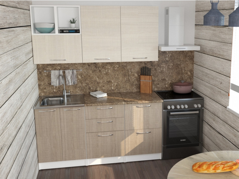 Мойка, смеситель, стеновая панель и посудосушитель в комплект гарнитура не входят.