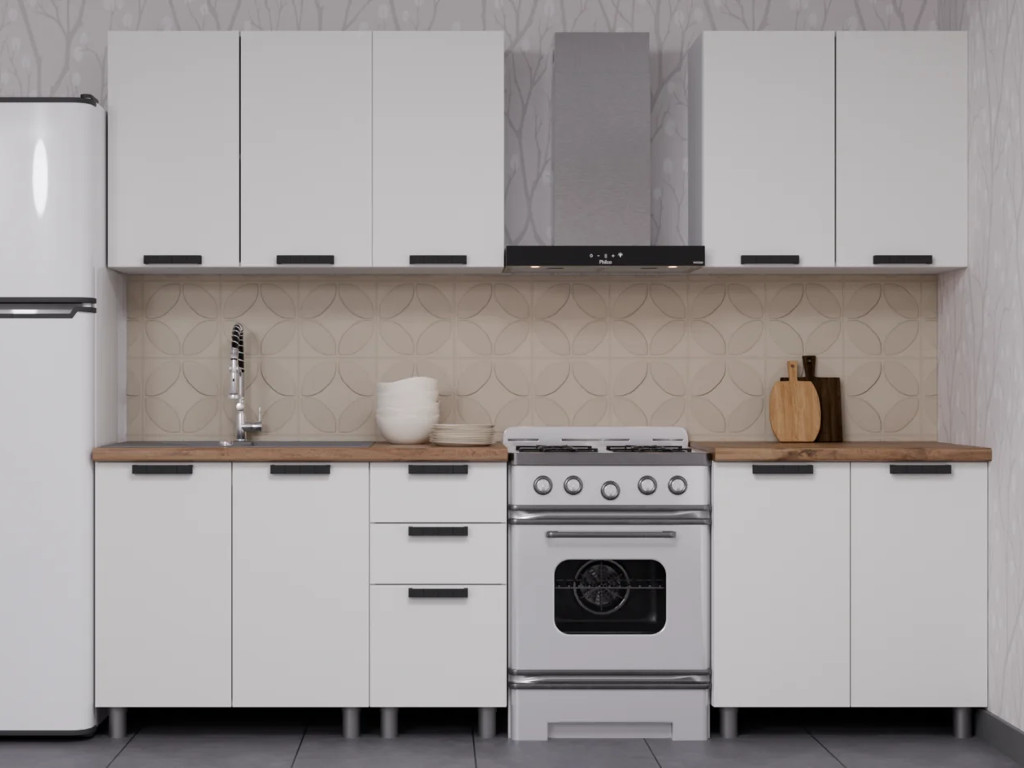 - Кухонный гарнитур Орешник 2000 мм Матовый Белый