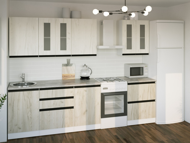 Мойка, смеситель, стеновая панель и посудосушитель в комплект гарнитура не входят.