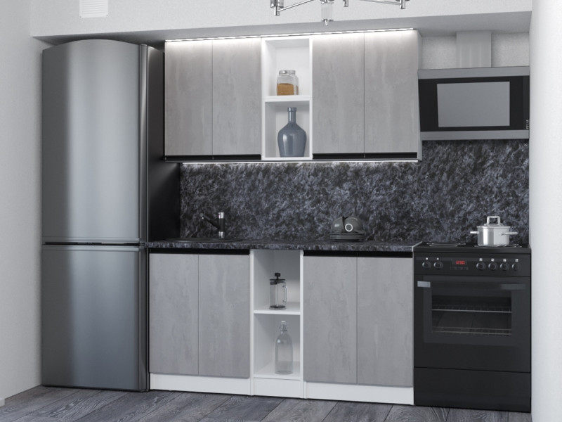 Мойка, смеситель, стеновая панель и посудосушитель в комплект гарнитура не входят.