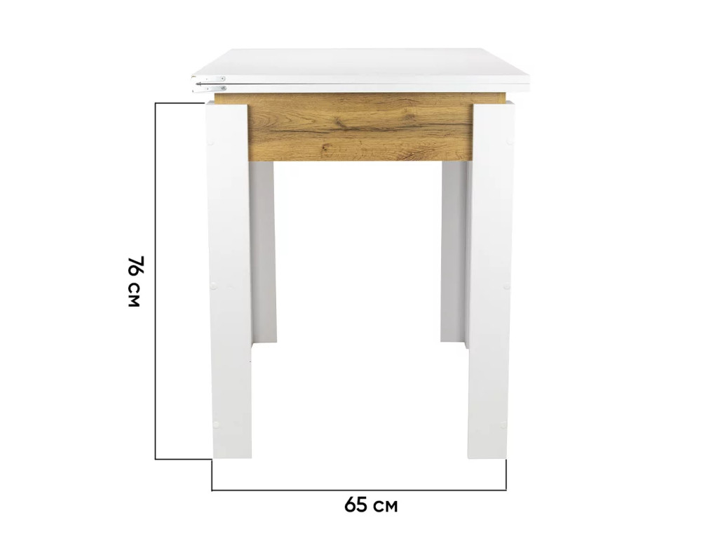 Стол обеденный Doma раскладной с ящиком Белый бриллиант/Дуб вотан