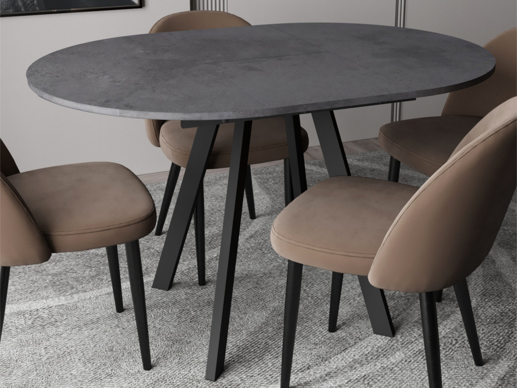 - Стол обеденный Элип раздвижной ЛДСП Камень темный