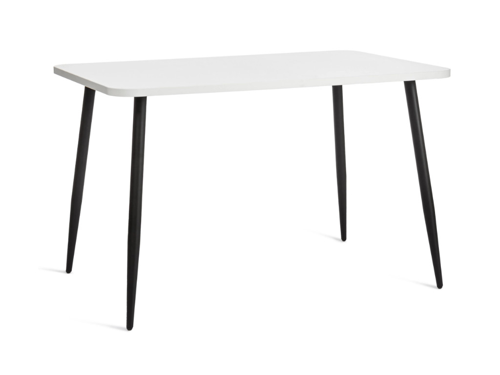 Cтолешница белого цвета выполнена из ЛДСП толщиной 25 мм, края оклеены прочной пластиковой кромкой толщиной 2 мм. Изящные тонкие ножки изготовлены из металла и окрашены в черный цвет.