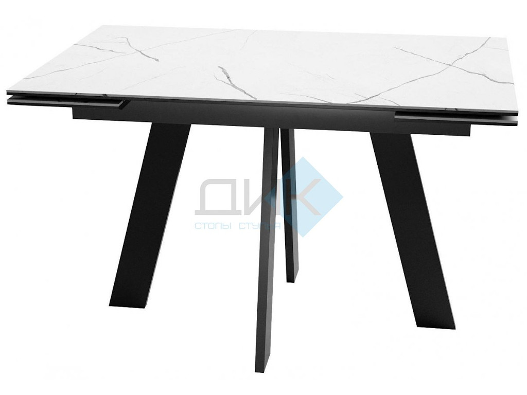 Стол SKM 120 керамика белый мрамор/подстолье черное