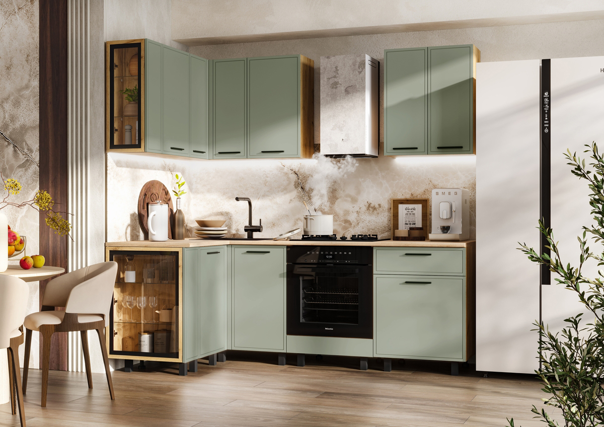 - Кухня Бьянка 1,2*2,2 м Олива софт, Дуб Крафт