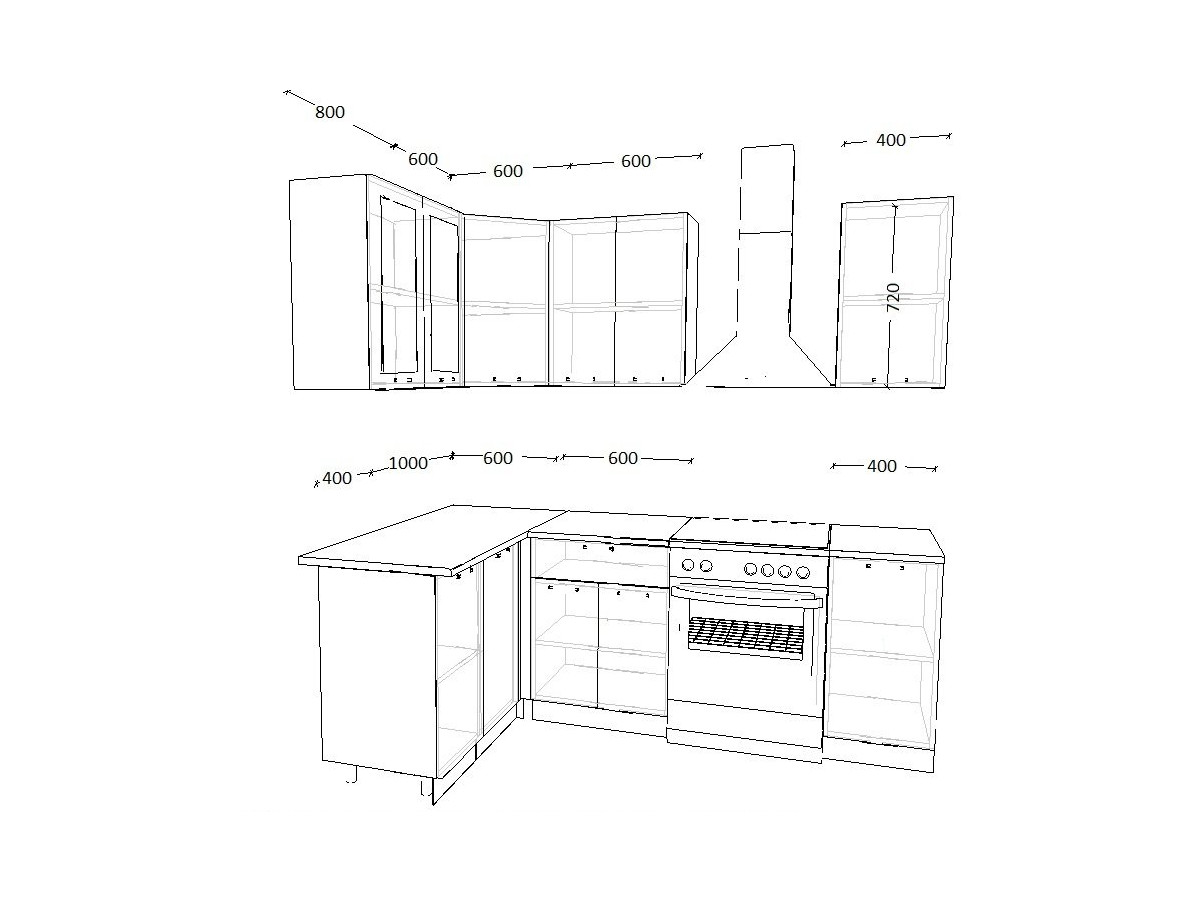 - высота верхних шкафов 720 мм