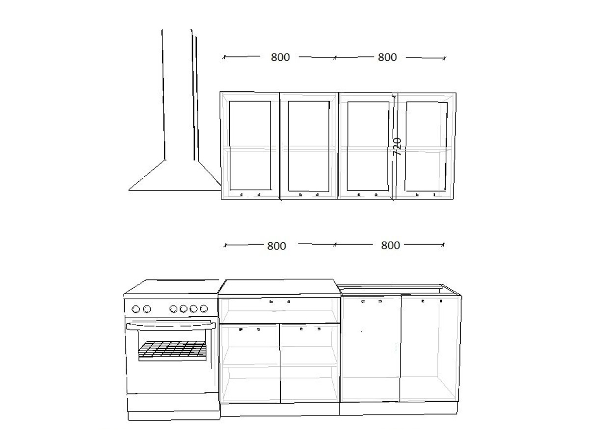 Кухонная мойка, стеновая панель, посудосушитель, планки для столешницы в комплект не входят.