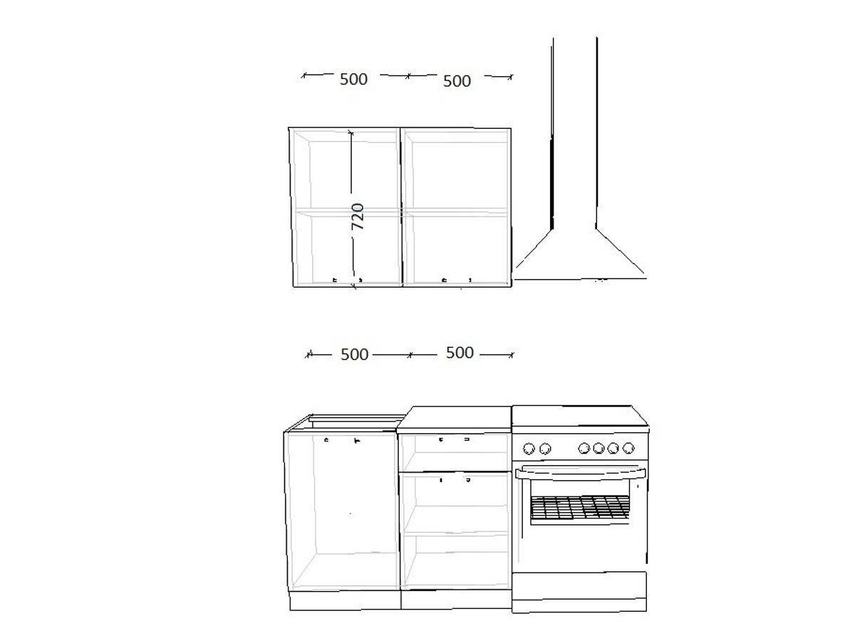 - высота верхних шкафов 720 мм