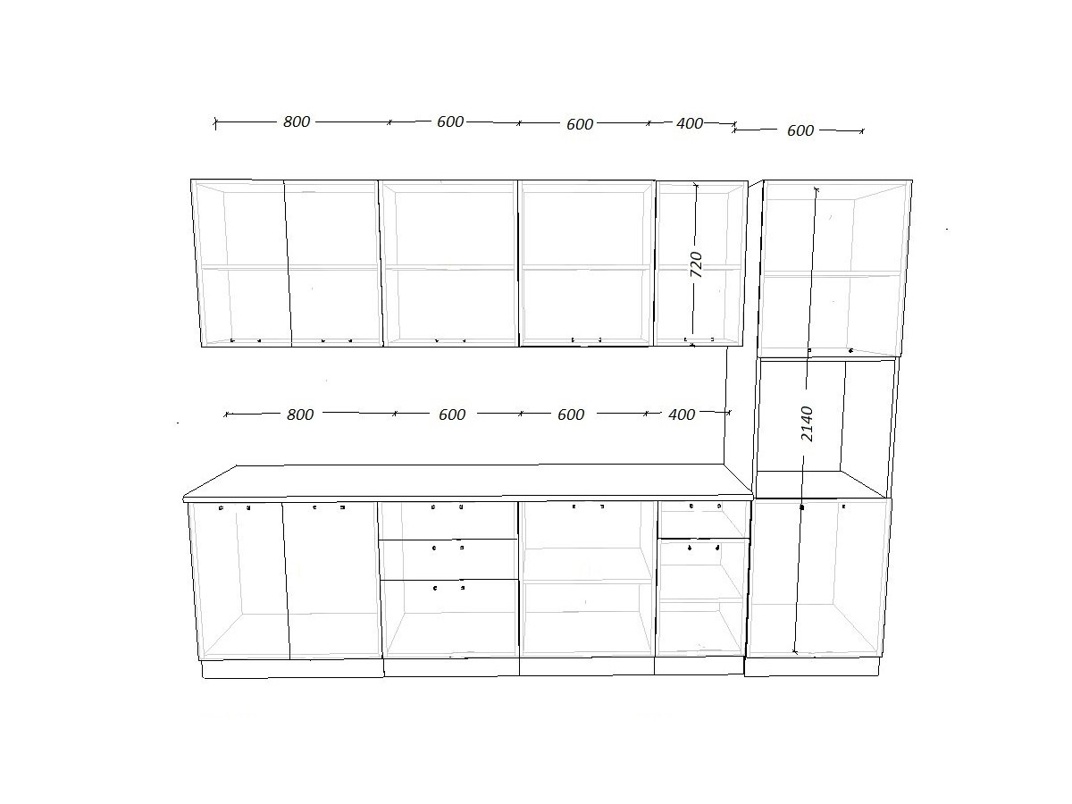 - высота верхних шкафов 720 мм